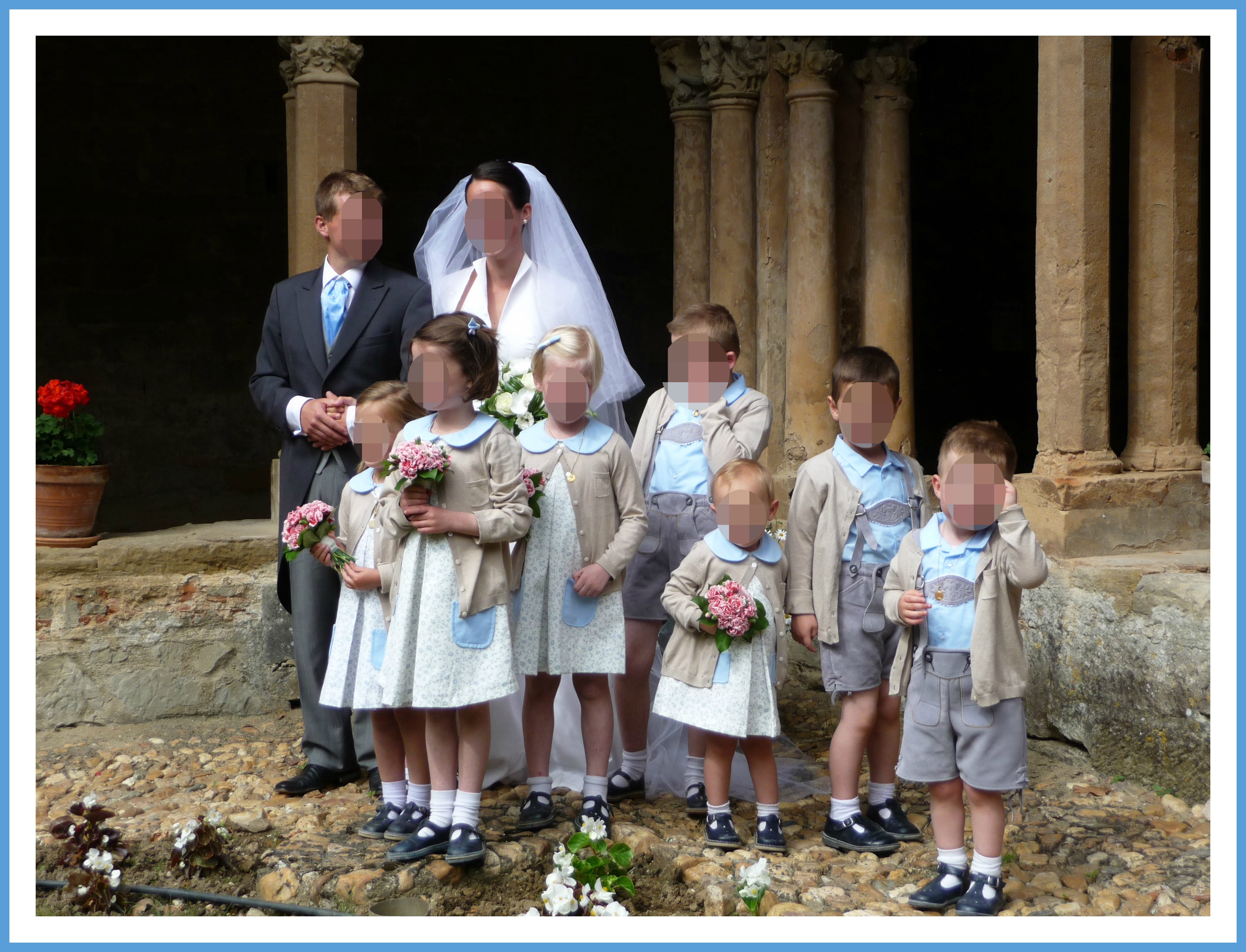 « Pendant la préparation de notre mariage, j’avais beaucoup profité de vos trucs et astuces, j’avais rêvé devant certains cortèges… Voici enfin une photo du fruit de ces réflexions!