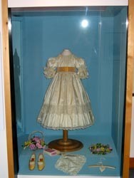 • Matières : Taffetas de soie et dentelle : au total, plus de 40 mètres furent utilisés !